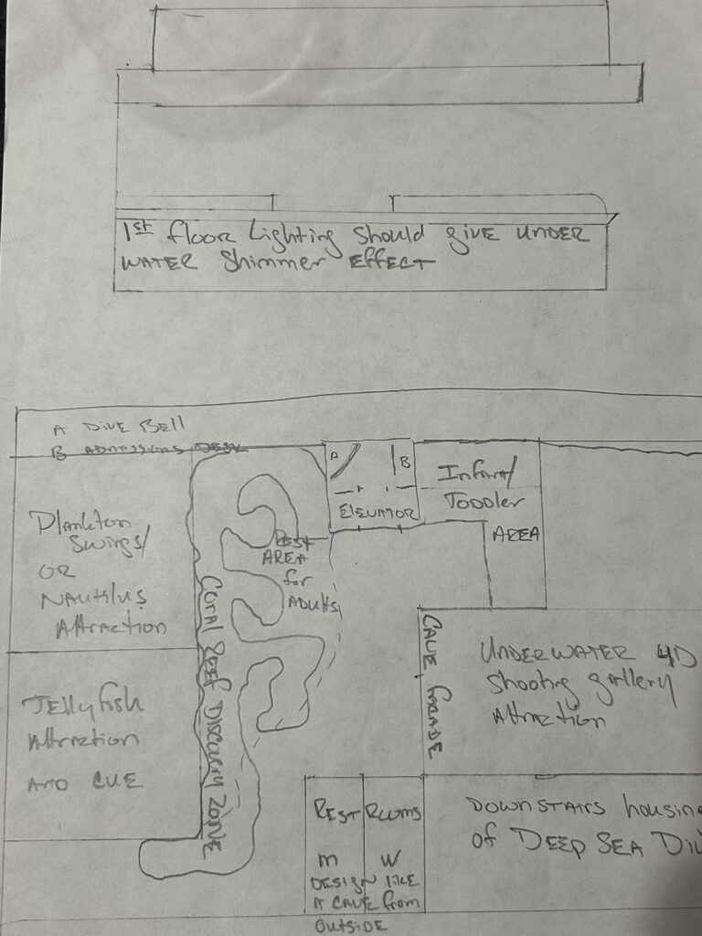 It is said that we know more about the face of Mars than our world’s oceans, yet the oceans make up 70% of the Earth’s surface. Let’s join Diver Dan (named after the Divers Awareness Network) and Diver Sylvia (named after Dr. Sylvia Earle) as we explore our oceans. Oceans play such a vital role on our planet from regulating temperature to absorbing carbon dioxide and fueling the water cycle. That is the same water cycle that allows us to grow the food we need to survive. In this immersive experience called Ocean Realm everyone can explore the ocean and unlock some of its mysteries. Whether your interest is in the captivating beauty of the coral reefs (walk-through interactive area) or the secrets in the depths of the ocean (motion simulator attraction). Maybe you are fascinated with the creatures that live between these two worlds such as jellyfish (parachute jump-style attraction), nautilus (space shot attraction) or you just want to interact with various sea creatures (interactive shooting dark ride). People of all ages are more than welcome. With the area including a safe infant/toddler area and a relaxing 4D theater, there is so much to explore and discover. Don’t forget to visit The Dive Shop, have a delicious meal at The Tidal Zone, or take a photo with your favorite sea character. Most importantly have fun and delve into this Ocean Realm.